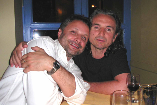 Atény červen 2004 with Lakis and great Greek wine. Apostholis Anthimos, best European guitar player, from legendary SBB Athens, Greece June 2004 |