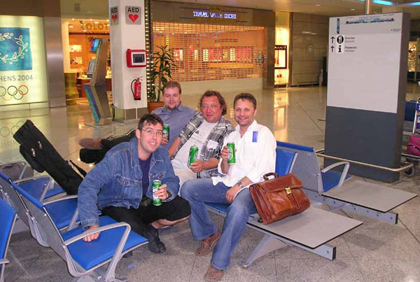 morning's flight home Agharta Gang at Athens' airport June 2004