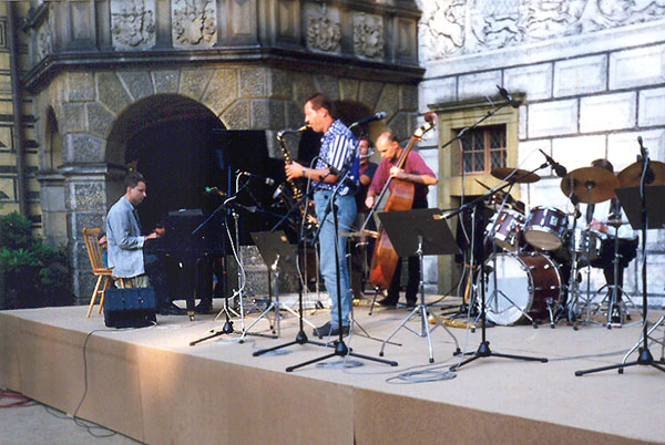 Frýdlantská jazzová dílna lektorský koncert s basistou Mírou Honzákem a saxofonistou Frantou Kopem srpen 1994