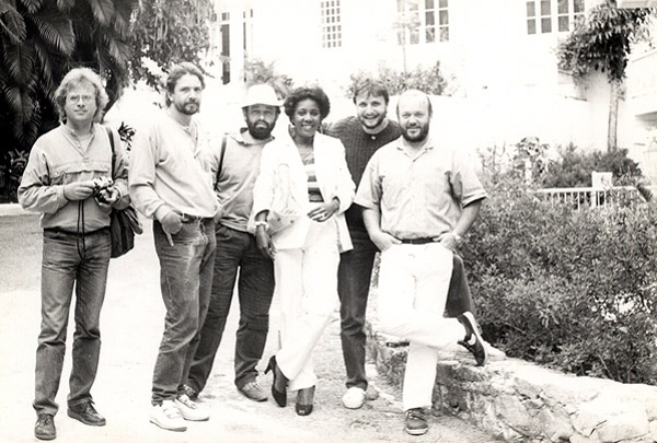 Blues Band at Cuba in front of Ernest Hemingway's house D.Hajek, L.Andrst, A.Charvat, interpreter Elsa, B.U., P.Lipa February 1986 |
