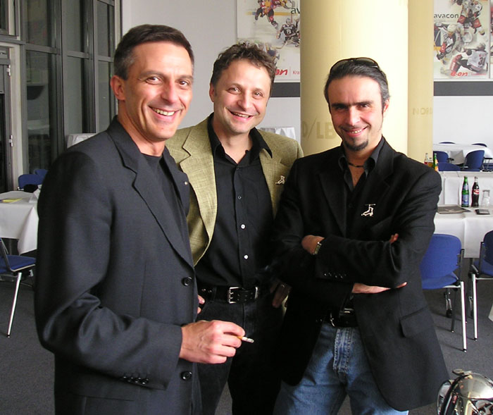 Ředitel společnosti M.O.I. Roberto Cosso, já a Pasquale po tiskovce (duben 2004)